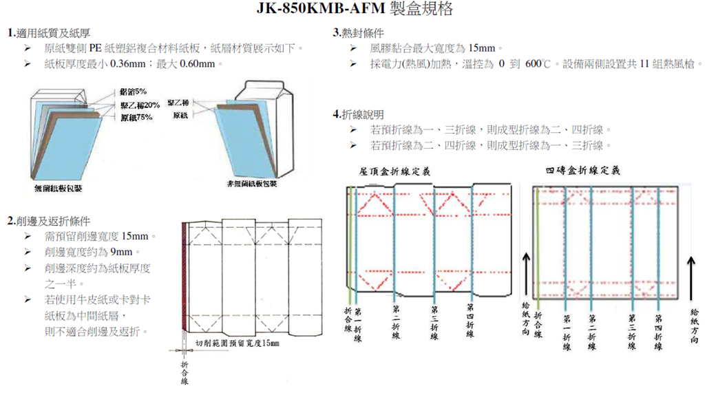 紙盒展開長度: 114mm≦康美≦310mm;143mm≦屋頂≦303mm